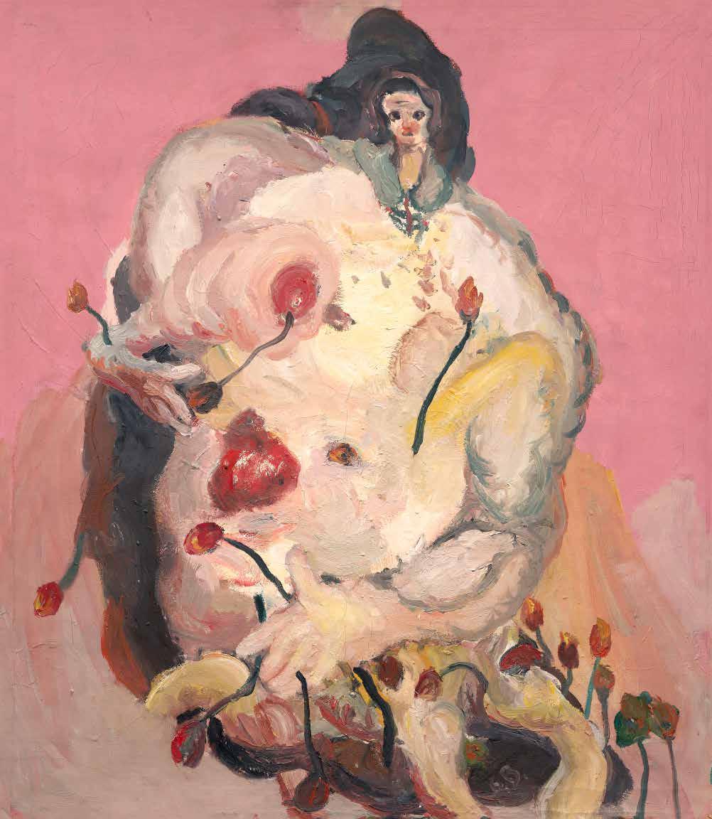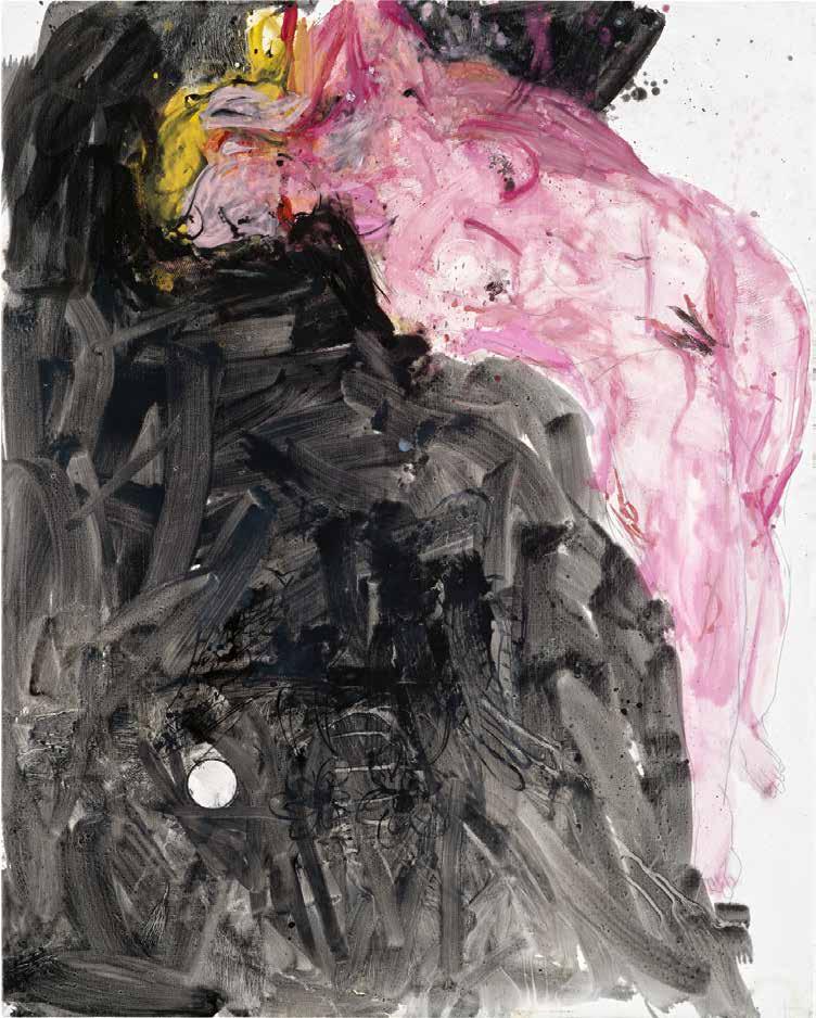 Baselitz’s motifs took form out of a kind of painterly primordial ooze, ironically titled, for example in Blumenmädchen . Figures and heads look as though they have just been born, but still tormented by pain and literally fragmented. No new beginning that does not carry the invisible burden of memory seems possible. Memory was, after all, divided, ever since the end of the war in 1945, then in 1949, and yet again with the division of Berlin in 1961. Part of the nature of dividing is the fragmentary, which places an additional burden on memory, and this provided Baselitz with a starting point for an aesthetic painterly strategy. Mutilations, fractures, knots, and injuries: such phenomena could be used both as content as well as form.