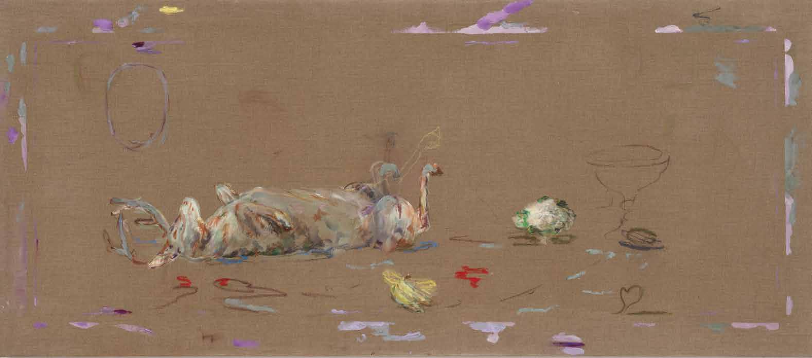 Once Again (with Carrots), 2026, acrylic and oil on canvas, 100 x 160 cm | 39.4 x 63"
