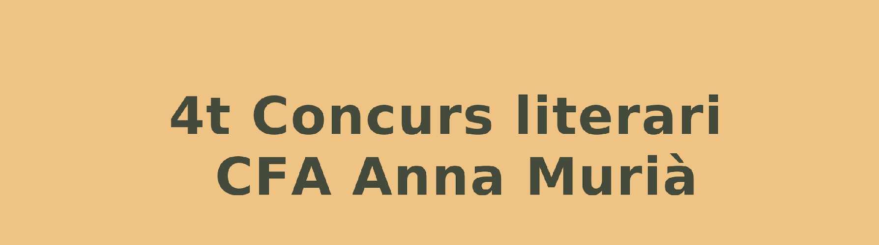 El recull d’escrits que teniu a les mans és el conjunt de textos guanyadors del 4t Concurs Literari del CFA Anna Murià. Reflecteix la diversitat de sensibilitats i procedències dels alumnes de la nostra Escola, que participen en els diferents estudis i nivells que impartim. És un goig contemplar la capacitat i l’entusiasme dels alumnes per expressar-se amb paraules. Esplaieu-vos amb la lectura!