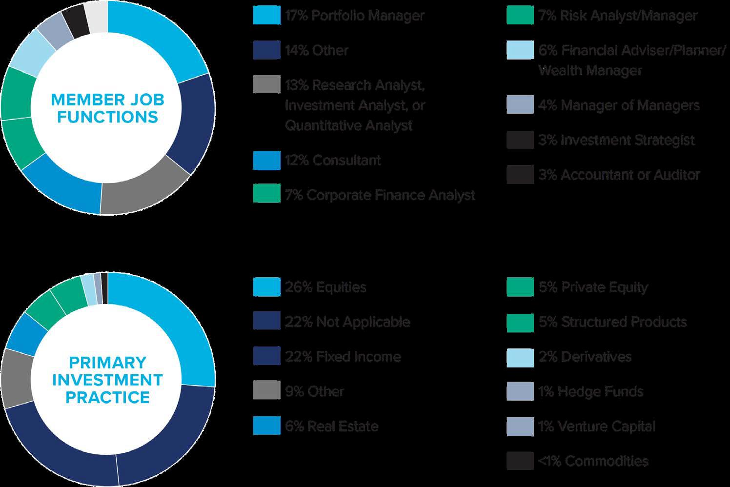 C-SUITE CEO,COO,CIO,CFO, PrincipalPartner 16% DIRECTOR ManagingDirector, Director 20% SENIOR EVP,SVP, Sr Analyst,Sr Advisor, Sr.PortfolioManager 19% MEMBER SNAPSHOT 97% OFALLCFAWMEMBERSARE CFACHARTERHOLDERS 55% OFALLCFAWMEMBERSHOLD SENIOR-LEVELPOSITIONS
