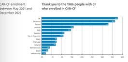 The CAR-CF trial is supported by the ECFS-CTN and as the name suggests it aims to collect blood samples from pwCF all across Europe with the aim of detecting if a pwCF has had Covid. The trial also aims to investigate how well pwCF developed immunity to Covid-19, after receiving a Covid-19 vaccination. Two questions that many people with CF and their families are certainly keen to see answered. The enrolment phase of this trial began in May 2021 and ended in December 2023 and in this time 1906 pwCF from across Europe have been enrolled. In 2024, the CAR-CF team, followed up pwCF at their routine clinic appointments, blood samples and analysed results. It is fantastic to see that 70 pwCF from Ireland were enrolled on the study and it will be interesting to find out the results when they are in, we will be sure to keep you posted!