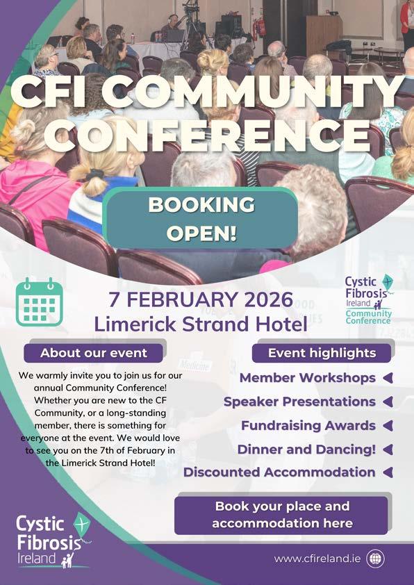 Welcome to the Autumn edition of Spectrum 2025. The Access to Medications working group celebrated the announcement that Alyftrek, the newest modulator therapy would be reimbursed in Ireland from the 1st of September and available on the expanded license. The group have campaigned tirelessly for four years to ensure all those who stood to benefit from a modulator therapy would have access. Our sincere thanks to them for their tenacity and dedication. They remain committed to supporting those who cannot benefit from a modulator and we will continue to invest in research to find effective therapies for all.