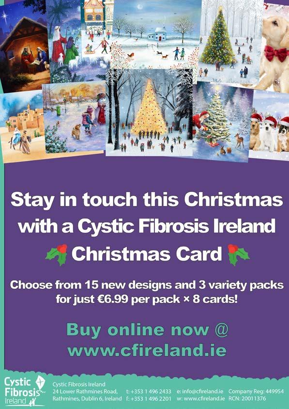 For more information on leaving a legacy gift to Cystic Fibrosis Ireland, please contact us for our advice leaflet, “Your Legacy Could Be Life-Changing”. You can also visit our website at www.cfireland.ie or MyLegacy.ie for more details. Alternatively, you can call us directly at 01 496 2433 or email info@cfireland.ie.