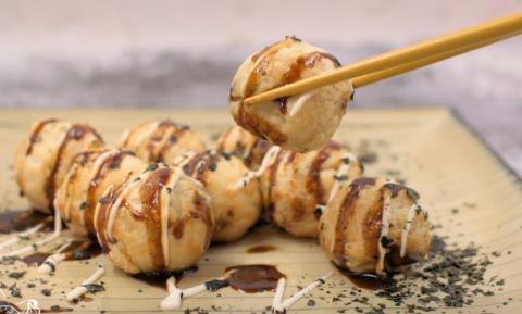 Los takoyaki son pequeñas bolitas de masa rellenas de trozos de pulpo y cocinadas en una plancha especial. Se sirven con una salsa espesa y dulce, espolvoreadas con katsuobushi (copos de bonito seco) y ao-nori (alga en polvo). Este delicioso bocado es típico de Osaka, y se encuentra comúnmente en puestos de comida en ferias y mercados.