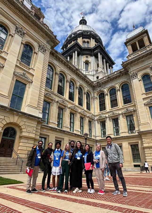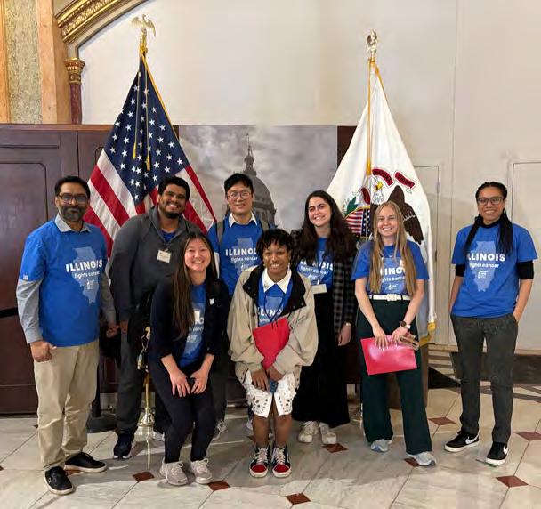 On May 7, UCCCC trainees joined the American Cancer Society Cancer Action Network (ACS CAN) for Illinois Cancer Action Day in Springfield. The group urged state legislators to support two cancer-focused policies: 1) Taxation of all tobacco products at a rate equal to that of regular cigarettes, and 2) $1M in state funds for colorectal cancer screenings and prevention. Their efforts were rewarded: The Illinois General Assembly included increased tax on tobacco products, including e-cigarettes, in the revenue bill for FY2026 and approved state funding for the screening and prevention of colorectal cancer across Illinois.