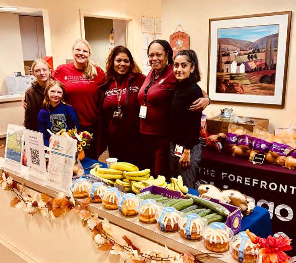 Food insecurity is a growing concern for many, especially cancer patients. As a way to engage patients, promote clinical trials and also respond to the current food insecurity issues many patients are facing, the UCCCC Clinical Trials Support Office (CTSO) transformed Infusion Center lobbies into farmers markets at the UChicago Ingalls/Harvey and UChicago Flossmoor locations. Held during the week of Thanksgiving, the market provided patients, patient advocates, family, friends, and staff with almost 800 pounds of free fresh produce, including potatoes, carrots, onions, cranberries, apples, oranges and bananas. OCECHE provided cancer patients and their families with fresh laid eggs from their Urban Farm as well as sweet treats for Thanksgiving meals. The effort was funded in part by a Gilead grant and UCCCC COE.