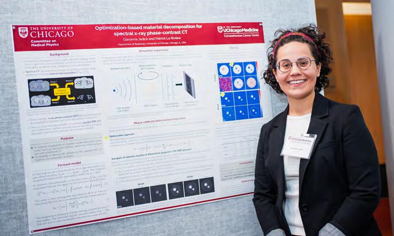 This year, UChicago joined the Emerging Cancer Scholars Exchange, a collaboration among the nation’s top cancer centers to provide early-career faculty speaking engagements at prestigious peer institutions. Phoenix Miao, PhD, Associate Professor in the Ben May Department for Cancer Research, was selected by the University of California San Francisco Helen Diller Family Comprehensive Cancer Center to present his work on dissecting stemnessinduced mechanisms of cancer immune resistance. Heather Whitney, PhD, Assistant Professor of Radiology, was selected to present her work on artificial intelligence in medical imaging at the University of Pennsylvania Abramson Cancer Center.