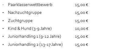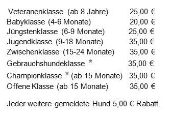 Spesen für Zuchtwarte pro km Entfernung vom Züchter je 0,38 € Zusätzlich je Zeitaufwand 1/2 oder 1/1