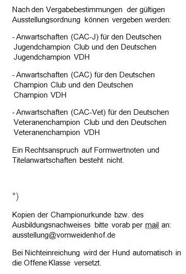 Online-Meldestelle: www.vdh.de/ausstellungen/ ausstellerportal/