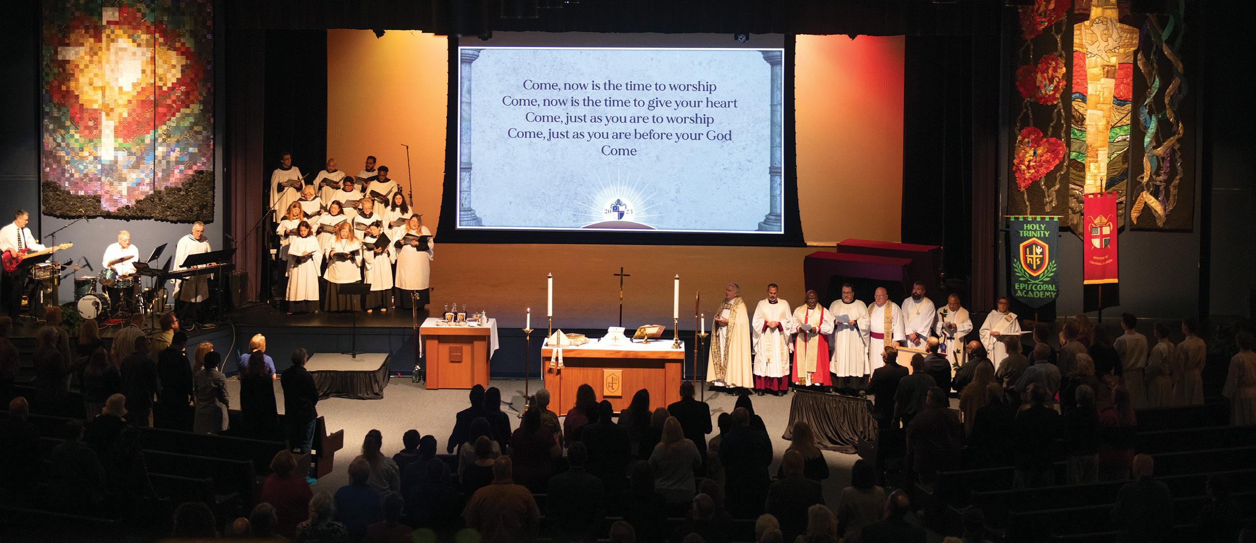 El reverendo Tom Rutherford, expresidente de la comisión permanente y rector de la Church of the Messiah en Winter Garden, ofició el servicio de adoración de apertura de la convención el sábado, 4 de febrero, a las 9 a. m., con música dirigida