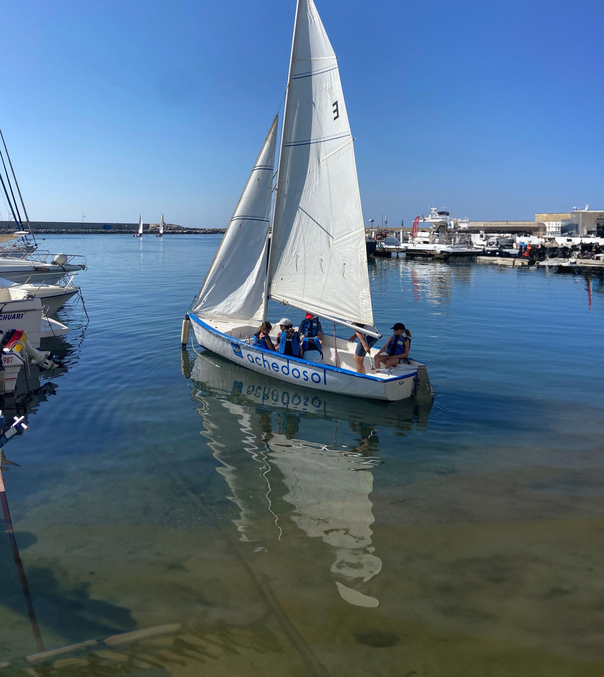 Gracias al patrocinio principal de Achedosol y a la organización conjunta entre la Fundación 24 Horas Deportivas y el RCN Estepona, este amplio grupo de alumnos han podido disfrutar de su primera toma de contacto con el deporte náutico de la vela.