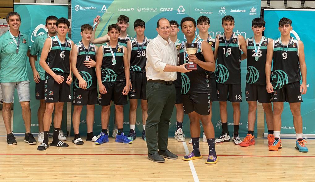 el Campeonato de Andalucía 3x3 U17 el compuesto por Bapate Diatta, David Puertas, Marco Sinatra y Cristian Tuñón, que el primer fin de semana de junio pondrían rumbo a Córdoba con la mochila cargada de ilusión y también algo de sueño tras el madrugón para jugar. Pero sarna con gusto no pica. El equipo, entrenado por Héctor Ruiz, pasó la fase de grupos en segunda posición en un triple empate tras un inicio titubeante de torneo y adaptándose a las altas temperaturas de la capital cordobesa, así como a las diferentes canchas en las que se disputaban los partidos. En cuartos de final levantaron un partido que se había puesto muy cuesta arriba ante Fundación CB Granada y pagaron, casi sin descanso, ese sobresfuerzo en semifinales. Eso sí, una renuncia -Ceuta- permitía que fueran tres los equipos andaluces que clasificaran y en la última bala se