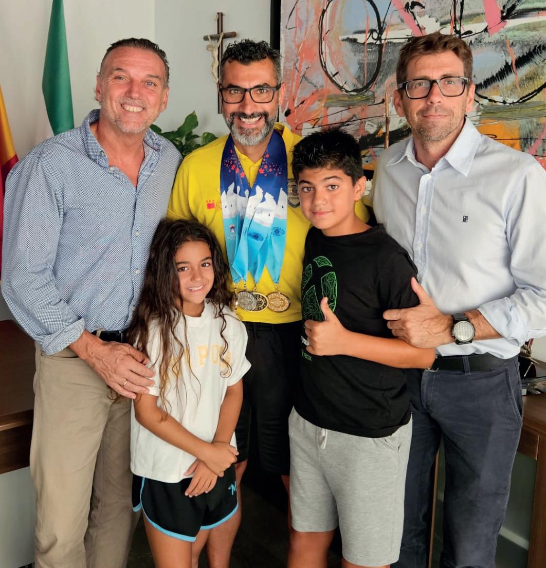 El Ayuntamiento de Benahavís, con la presencia del Alcalde, José Antonio Mena, y el Concejal de Deportes, Ignacio López, recibió al deportista a su llegada a España con galones de campeón y sus cuatro metales en el pecho.