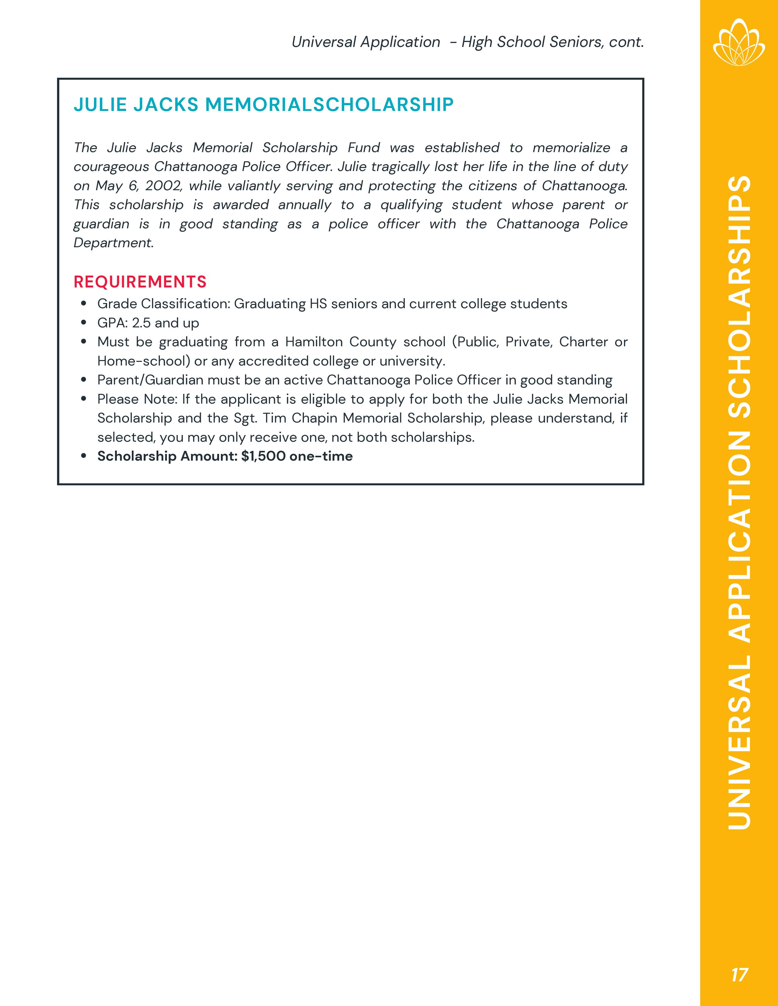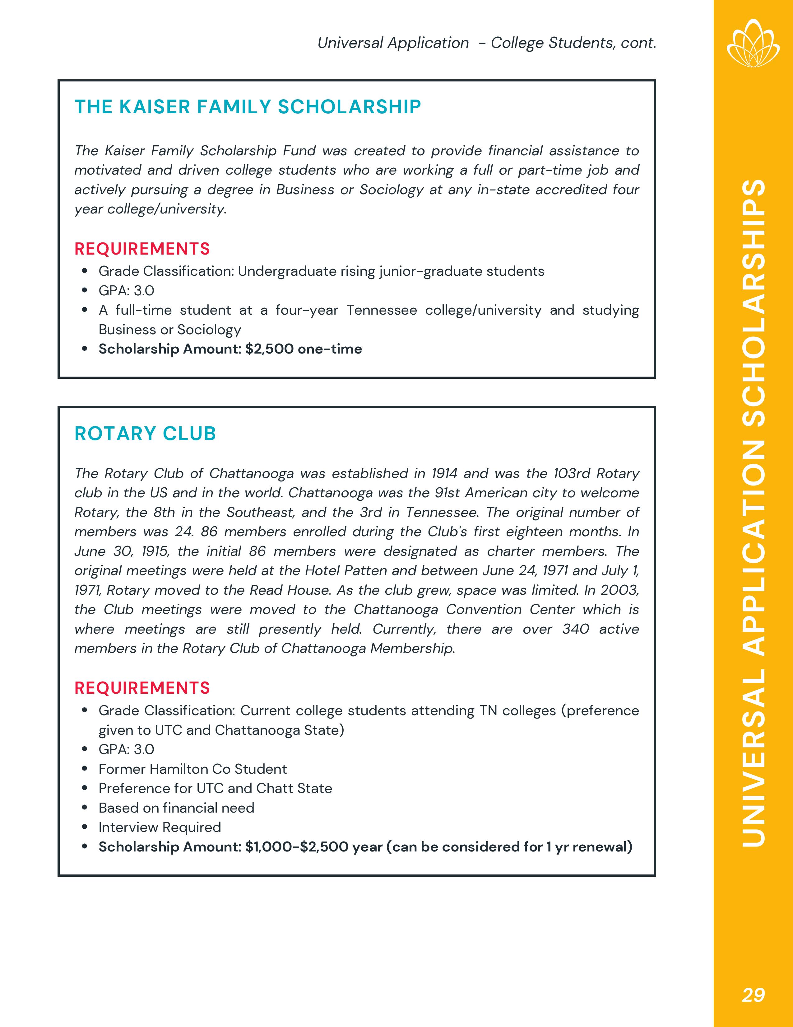 The Community Foundation of Greater Chattanooga’s 2025 Scholarship Season opens Monday, January 20, 2025. We now have a common application to simplify the application process.