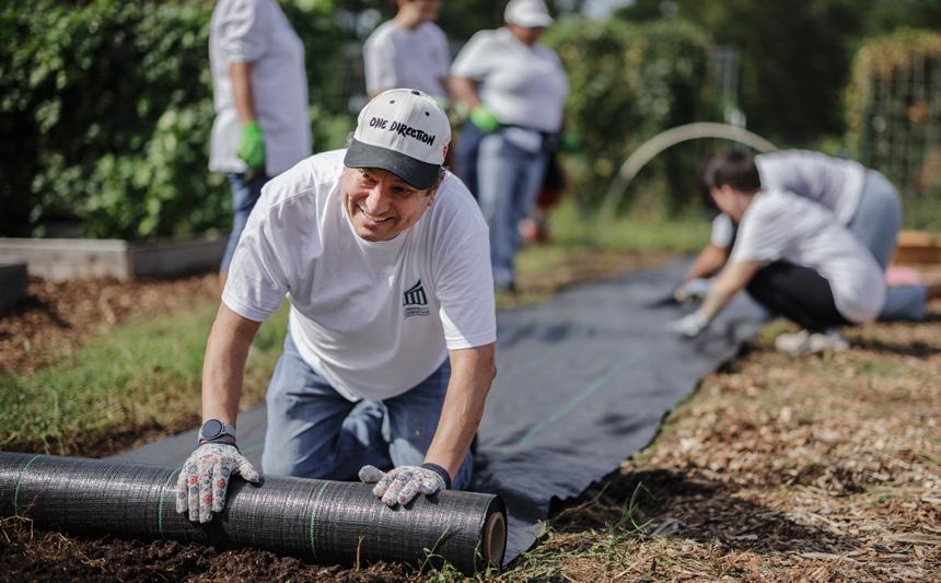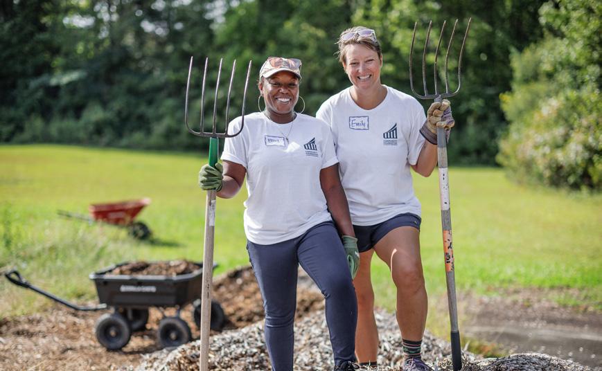Community Foundation staff dug in the dirt for a meaningful community service day at Positive Direction for Youth and Families (PDY&F) Community Garden on September 22, 2023. PDY&F’s gardens are located in East Greensboro, an area that has been classified as a “food desert”—where grocery stores that sell fresh produce are nearly non-existent. PDY&F strives to serve fresh, healthy food options to those affected by this disparity, educate the community, and launch a new generation of black and brown farmers.