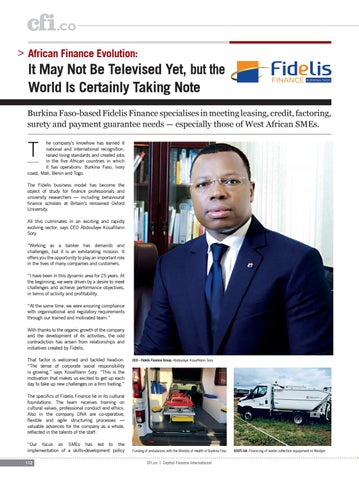It May Not Be Televised Yet, but the World Is Certainly Taking Note Burkina Faso-based Fidelis Finance specialises in meeting leasing, credit, factoring, surety and payment guarantee needs — especially those of West African SMEs.