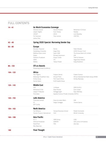 Otaviano Canuto Nouriel Roubini Joseph Stiglitz Evan Harvey UNCDF OECD Tor Svensson Tony Lennox James Zhan 42 – 49 Spring 2020 Special: Narrowing Gender