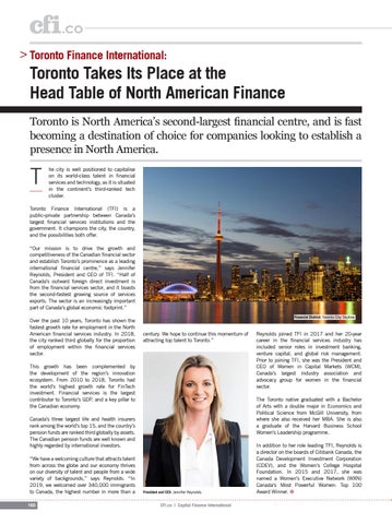 Toronto Takes Its Place at the Head Table of North American Finance Toronto is North America’s second-largest financial centre, and is fast becoming a destination of choice for companies looking to establish a presence in North America.