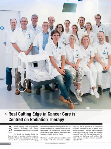 chemotherapy and immunotherapy. More than 50 percent of patients are judged suitable to receive radiotherapy. The methods used today are based on decades of global research, development and innovation – largely driven by Elekta. More than 140,000 patients around the world are treated with the company’s solutions CFI.co | Capital Finance International
