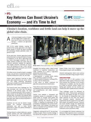 Eastern Europe. Since 2016, Ukrgasbank has financed green projects worth over $800m. Ukraine’s banking-sector reform must continue to promote sustainable energy and green finance. CONCESSIONS REFORM Ukraine ranks 66th of 160 countries in the World Bank’s latest Logistics Performance Index 2018 ranking. Over two-thirds of the country’s infrastructure is outdated, and that has acted as a brake on economic activity. Ukraine is a leading grain exporter, but the country’s port infrastructure often impedes efficient movement.