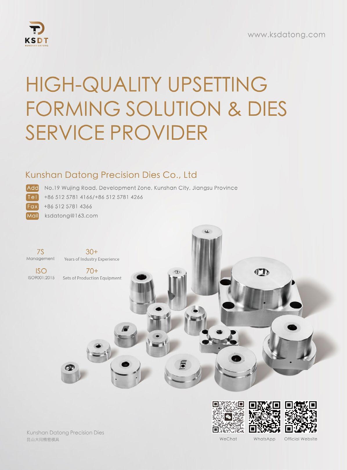 Kunshan Datong Precision Dies Co., Ltd., founded in 2005, is a technology-oriented enterprise focusing on the manufacturing of cold heading dies and accessories. The company owns more than 6,000 square meters of production plants, and more than 70 sets of production and processing equipment. The company has more than 50 employees, and the core staff has nearly 30 years of industry experience.