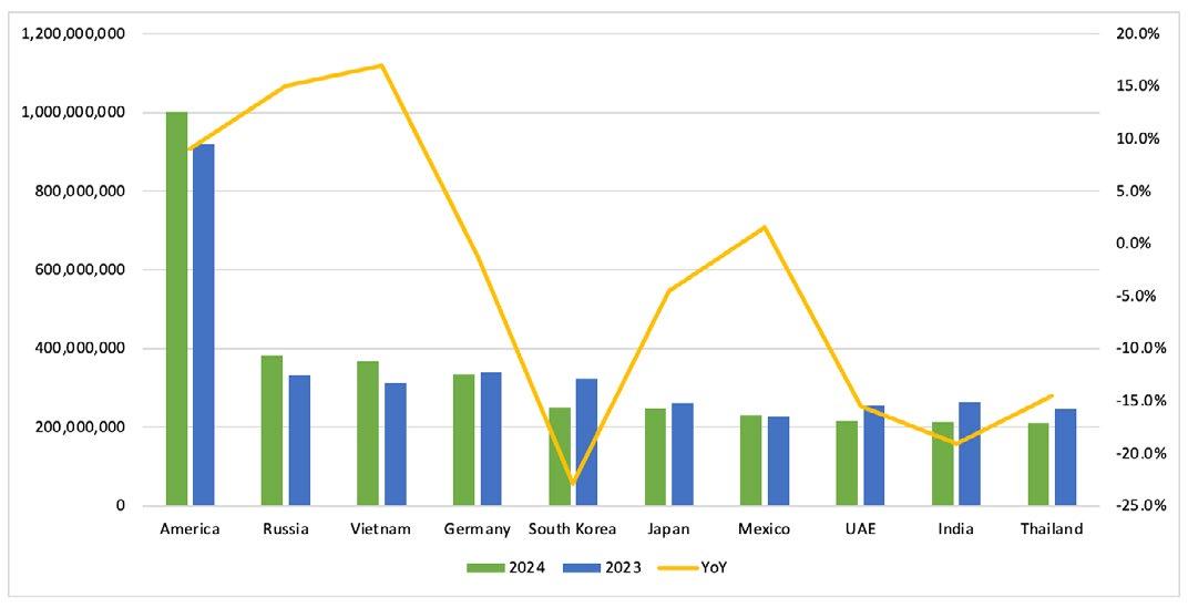 As previously reported by The Hindu, India imported nearly 2.7 million tons of steel products from Chin, a during the fiscal year 2024 (April 1, 2023, to March 31, 2024), accounting for one-third of India's steel imports and representing a 91% yearon-year increase. China has become India's largest supplier of steel products.