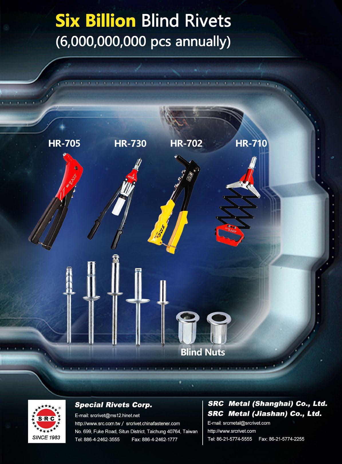 Established in 1983, SRC specializes in BLIND RIVETS, BLIND RIVET NUTS, & RIVETING TOOLS manufacturing. We can manufacture 6 billion blind rivets that meet DIN 7337, IFI and ISO standards annually – production power that most competitors simply can't match. We also produce up to 2 million high-quality riveters annually, leaving no doubt that we can cover your largest, most demanding orders. For more details, visit our website today.