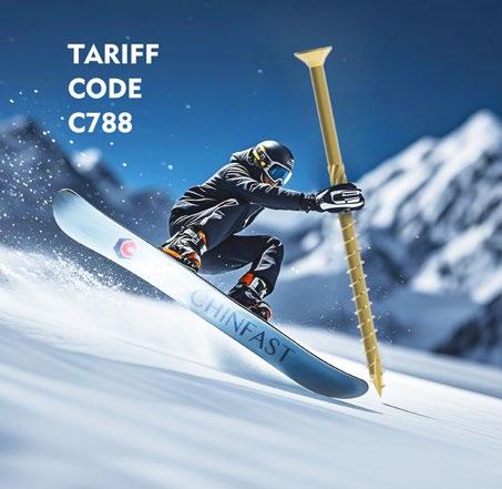 CHINFAST was established in 2005, with two whollyowned factories, JOYSTART and YOUSUN (Factory code:C788). Currently CHINFAST export around 8,000 containers annually. lt has actively expanded its business over the past five years from the main focus on manufacturing of multi-purpose wood screws, timber screw and decking screws to the DIY fasteners packaging services. In the ever-changing global market, we hope to create a new milestone for sustainable business development.