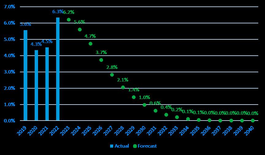 Private investment exposure to fossil fuels increased from 4.5% of the CEF as of June 30, 2021, to 6.3% as of June 30, 2022. Figure 3 provides updated projections of the CEF’s expected private investment exposure to fossil fuels, which is forecast to become de minimis around 2035-36.