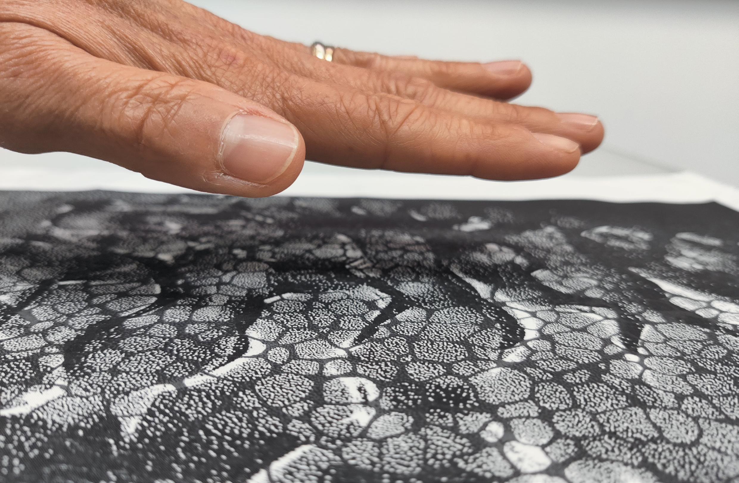 Tracy joined the Centre for Print Research (CFPR), University of the West of England (UWE), for an artist residency in 2022. She worked with Dr Nazmul Karim, Associate Professor for Novel Print Processes and Materials (Graphene), to undertake innovative material and technological investigations to combine traditional printmaking with the super conductive possibilities of Graphene.