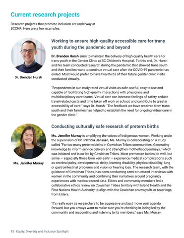 Facilitate collaboration that promotes inclusivity in related research across BC Children’s and BCCHR