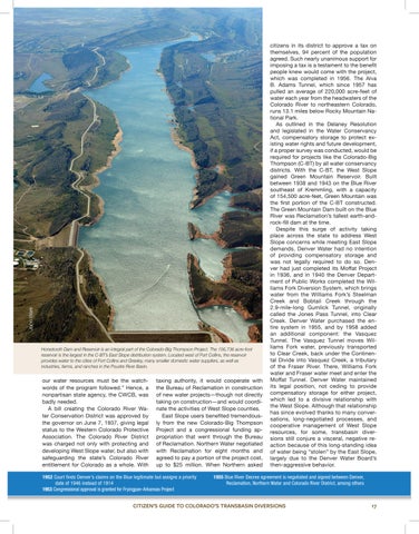 All photographs are used with permission and remain the property of the respective owners. All rights reserved. Cover photo of the Alva B. Adams Tunnel by Jim Richardson, inset images by (top to bottom) Echo Canyon River Expeditions, Kevin Moloney, Jenny Downing, Northern Water.
