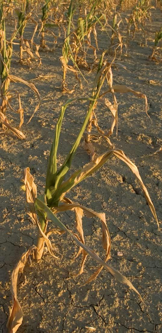 Corn in northeast Colorado (left) withers for lack of moisture during the summer of 2002. The area also saw ponds and streams dry-up during the same period (right).
