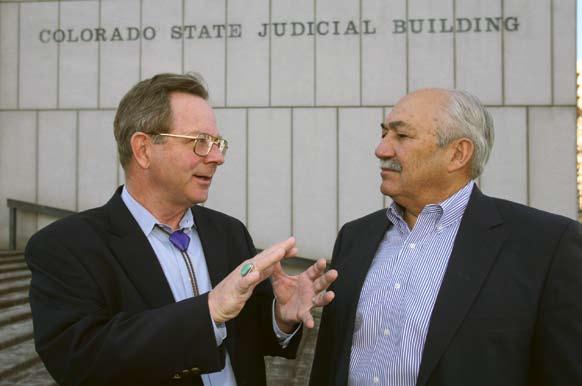 Justice Greg Hobbs (left) pictured with CFWE Executive Director Don Glaser at the Colorado State Judicial Building in Denver.