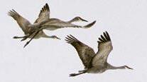 Sandhill cranes flock to the central Platte River in Nebraska as part of their annual migration. A handful of endangered whooping cranes also may stop at this area of the Platte River while moving between their wintering grounds