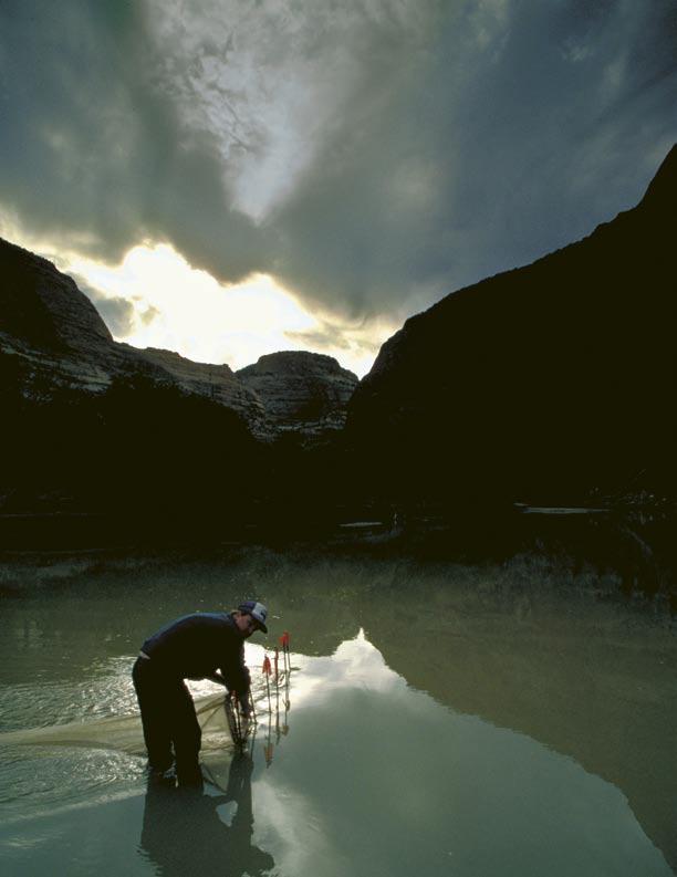 USFWS researcher Bruce Haines seines the Green River near Dinosaur National Park in search of larvae from the Colorado pikeminnow.