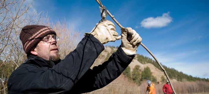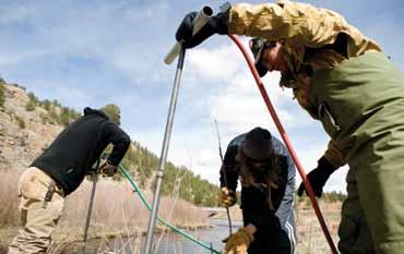 Chris Sturm (left) joined volunteers at a project on Tarryall Creek coordinated by Colorado Open Lands and Wildlands Restoration Volunteers and funded by the Healthy Rivers Fund, which he oversees. He tries to visit all of the projects and programs he distributes funding to and would definitely recommend the water stinger he was using here to pre-drill a hole down to the water table for planting a willow.