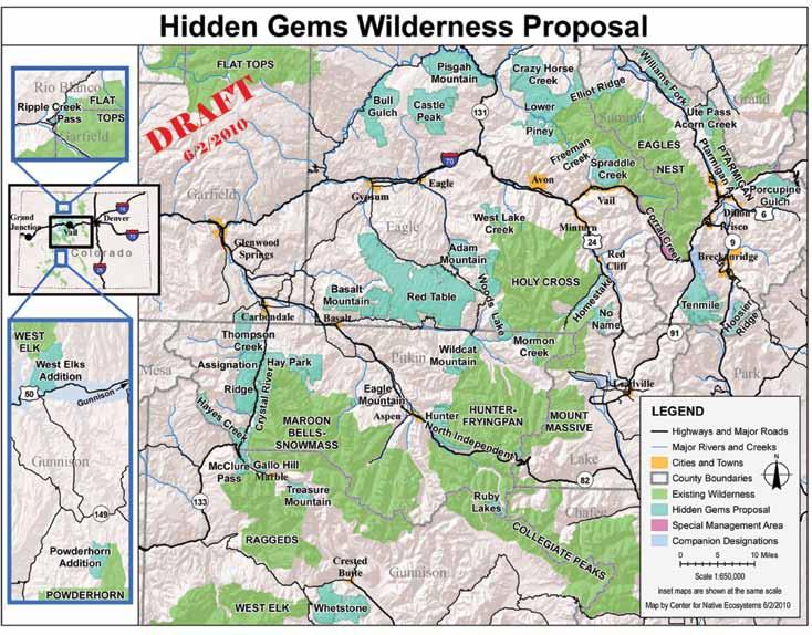 ally in mountain biking. Bailey and other mountain bikers in the Vail area have endorsed several Hidden Gems parcels for wilderness, but in other cases want a national recreation area or some other type of land management designation that would allow continued access to existing roads and trails while limiting motorized incursions.