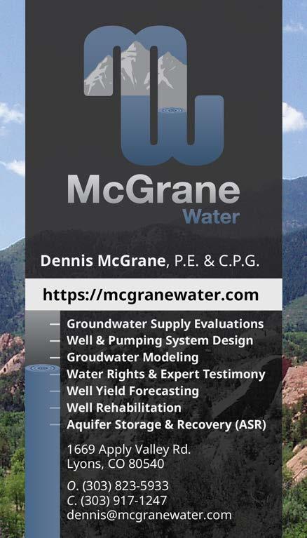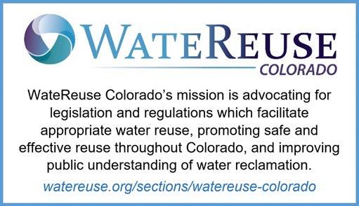 Connect with WateReuse Colorado to learn more about federal and state guidelines for reuse and efforts to advance direct potable reuse at https://watereuse. org/sections/watereuse-colorado.