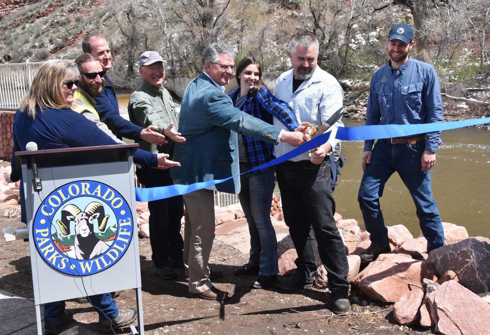 A ribbon-cutting ceremony celebrates the opening of the Watson Lake Fish Bypass in May 2019 at a diversion dam adjacent to Watson Lake and the Colorado Parks and Wildlife fish hatchery on the Poudre River. The bypass was built by participants of the Northern Integrated Supply Project, Morning Fresh Dairy, Noosa Yogurt, and Colorado Parks and Wildlife to improve habitat on the Poudre River and fulfills one of the promises made by NISP participants in the NISP Fish and Wildlife Mitigation and Enhancement Plan.