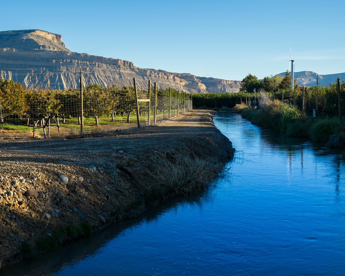 Replacing open irrigation ditches with enclosed underground piping is a high priority for the Colorado River District. Many of the Western Slope’s ditch systems are 50–100 years old. Occasional failures can result in damage due to localized flooding, but breaches and breakdowns aren't the only drawback to aging infrastructure. Loss of water due to old, inefficient systems means that operators may have to divert twice the quantity of water that crops actually require. Ditch-and-furrow irrigation is also labor-intensive. Farmers must battle weeds and algae with controlled burns and noxious chemicals. And, across much of western Colorado, irrigation ditches run through marine-deposited shales that inadvertently load groundwater and return flows with salt and selenium, before that water eventually enters the Colorado River, adversely affecting downstream users and wildlife. Advanced irrigation systems can minimize that leaching.