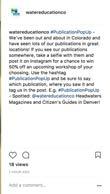 #PublicationPopUp —We’ve been out and about in Colorado and have seen our publications in great locations! If you see our magazines or guides, take a selfie with them and post it on Instagram for a chance to win 50 percent off an upcoming workshop of your choice. Use the hashtag #PublicationPopUp, be sure to say which publication, where you saw it, and tag us in the post. E.g. #PublicationPopUpSpotted: @watereducationco Headwaters Magazines and Citizen’s Guides in Denver!