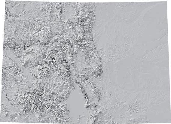 Colorado’s geography and water systems make it unique. The Continental Divide rises high, nearly halving the state, yielding massive snow-capped peaks and creating distinct drainage basins. Colorado is famous for its mountains. With an average altitude of about 6,800 feet above sea level, Colorado has the highest average elevation of the 48 contiguous U.S. states, yet 40 percent of its land area is composed of the vast Eastern Plains. The plains gracefully slope up from Colorado’s borders with Kansas and Nebraska to the base of the Rocky Mountain foothills. And there, as the plains approach the mountains, resides more than 85 percent of Colorado’s population.