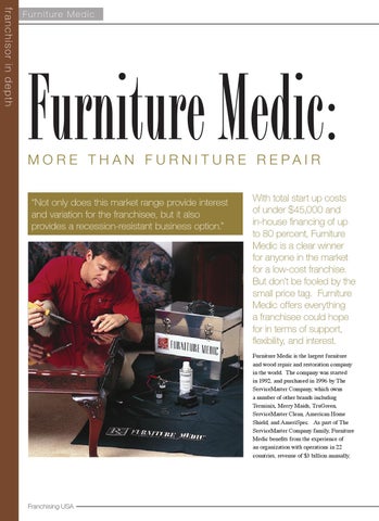 Furniture Medic: M ore T han F urniture R epair “Not only does this market range provide interest and variation for the franchisee, but it also provides a recession-resistant business option.�