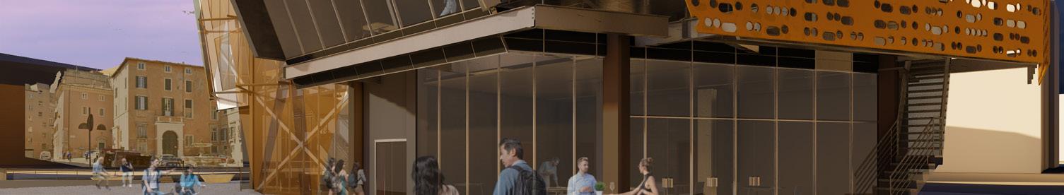 Defined as a Library of Imagination, the project focused on the diffusion of knowledge through group-based activity and hands-on learning. The group also defined visiting college students -- foreign to Rome -- as the primary users of the project based on mapping research of Rome Centre. The North facade, pictured to the right, communicates its intention as a conceptual ‘Tabernacle’ for those of diverse backgrounds. The site volume of this project included several stories underground in addition to Air Rights above the neighboring Lucio High School.