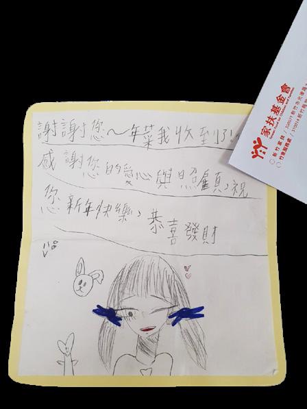 年後,陸續收到孩子們的來信,分享著日常生活與學習的點滴,也分享著對 年菜的喜愛與感動。雖然近年外在環境有著不可控的變數,不過我們始終相 信,愛就像蒲公英的種子,隨風飛舞,風吹呀吹,蒲公英飄呀飄,種子在哪 裡,哪裡就有美麗。讓我們在2023年初春攜手同行,把愛傳出去!
