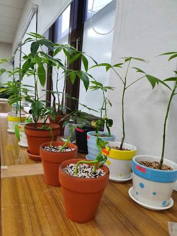 理處,園丁們利用路邊撿來的馬拉巴栗 種子,一株株的種起了一片小小森林。