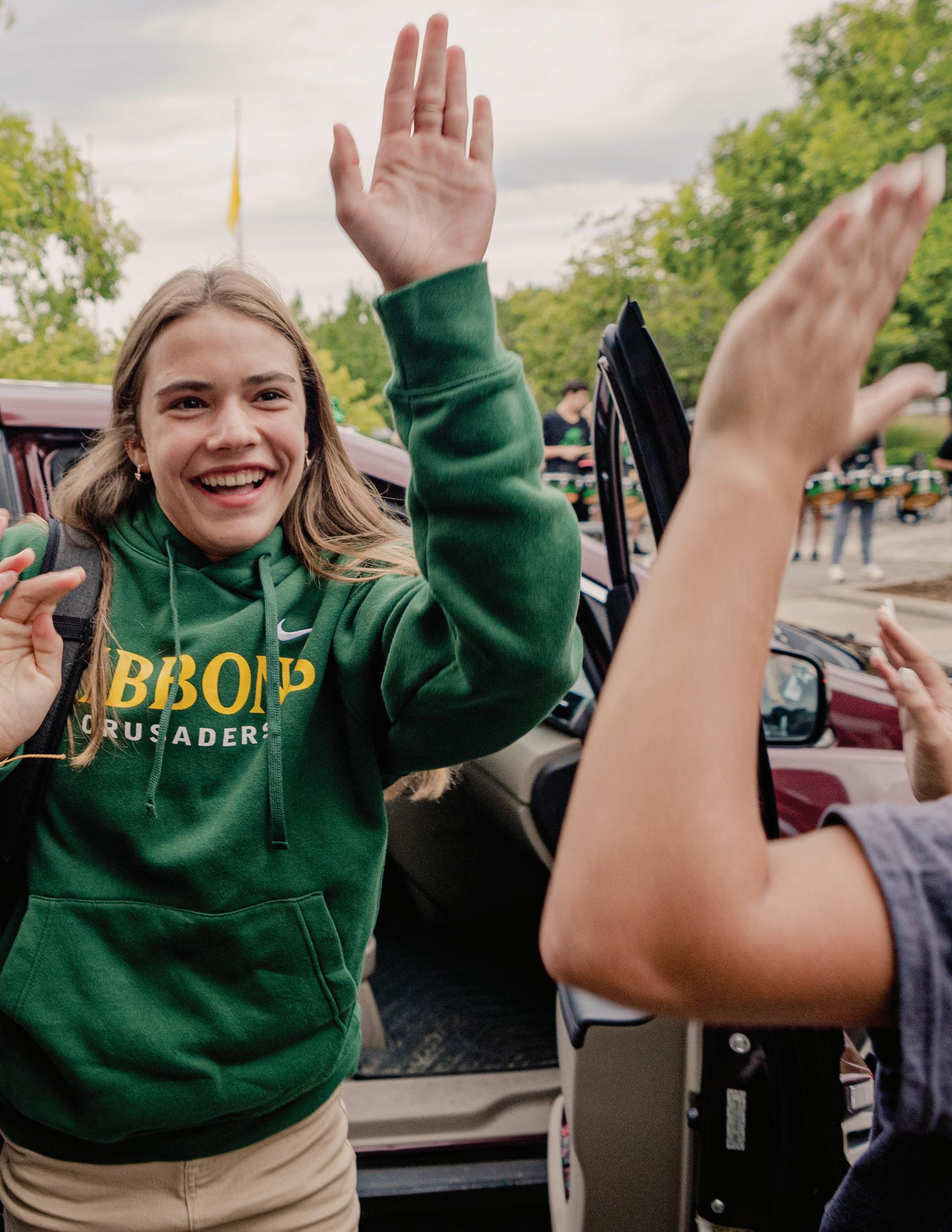 Hugs and high fives abound when students arrive for their first day of high school at Cardinal Gibbons. It’s a tradition that’s become a rite of passage. Incoming ninth-grade students are greeted by upperclassmen welcoming them to our community - a moment months in the making as the seasoned students spend the summer planning ways to make the morning meaningful. The smiles are genuine and the excitement is palpable. This is Gibbons. This is family.