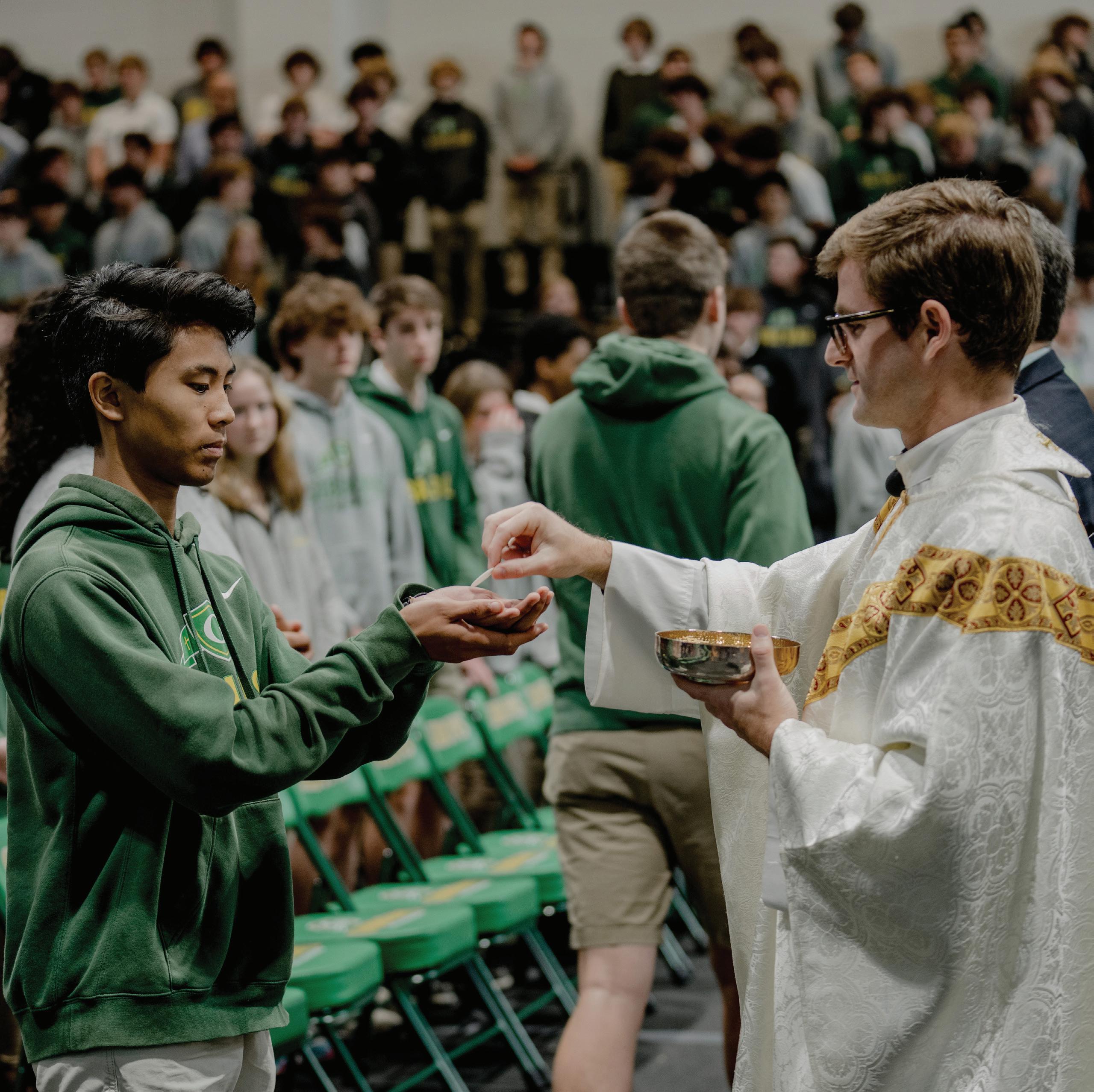 We were excited to welcome our full-time chaplain, Father Luke Rawicki, this fall. Fr. Luke has made an indelible mark on Gibbons already. He celebrates daily Mass, teaches a course, and profoundly energizes our spiritual life program. You can find Fr. Luke at games, plays, concerts, and running with the cross country team. He has been a fantastic addition to Cardinal Gibbons.