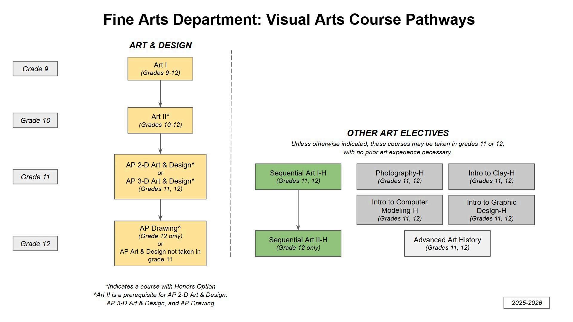 Intro to Clay-H, Seq Art IH, Seq Art IIH, Photography-H, Intro to Computer Modeling-H, Intro to Graphic Design-H